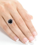 Rose Gold 2 3/4ct TDW Pear Shape Black Diamond Halo Split Shank Antique Ring - Handcrafted By Name My Rings™