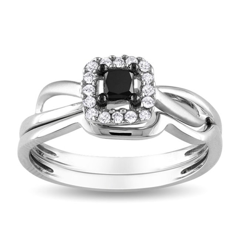 White Gold 1/3ct TDW Black and White Diamond Bridal Ring Set - Handcrafted By Name My Rings™