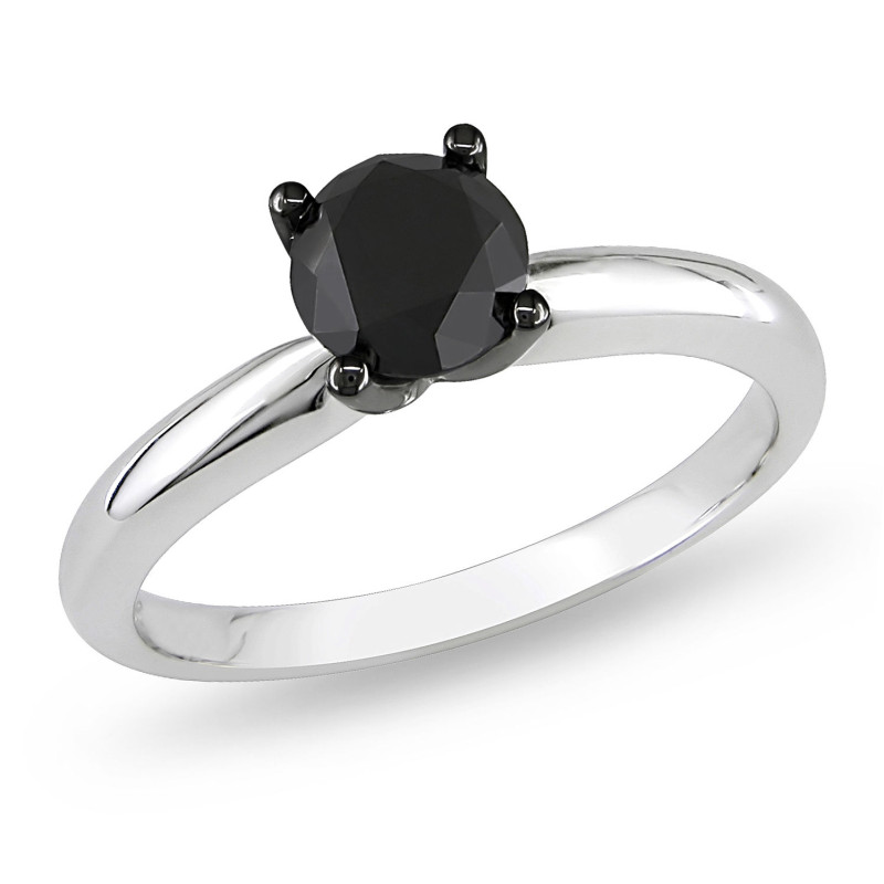 Imagine the look on her face when you show her this Miadora black diamond solitaire engagement ring. This 10 karat white gold band showcases a 1-carat round-cut black diamond, which offers a stunning contrast against the high polish finish. This stunning piece adds a modern touch to the timeless solitaire ring style.