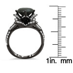 This gorgeous engagement ring features a round-cut black diamond surrounded by 14-karat black gold. A lotus flower shape and pave-set diamonds on the sides complete this beautiful ring.