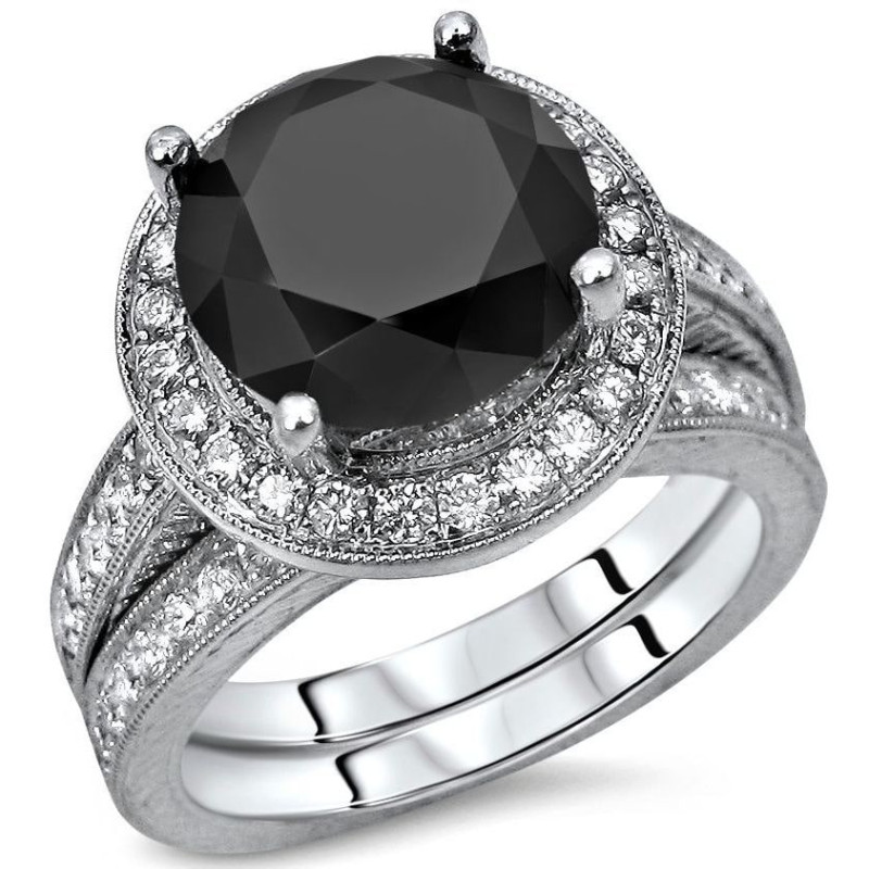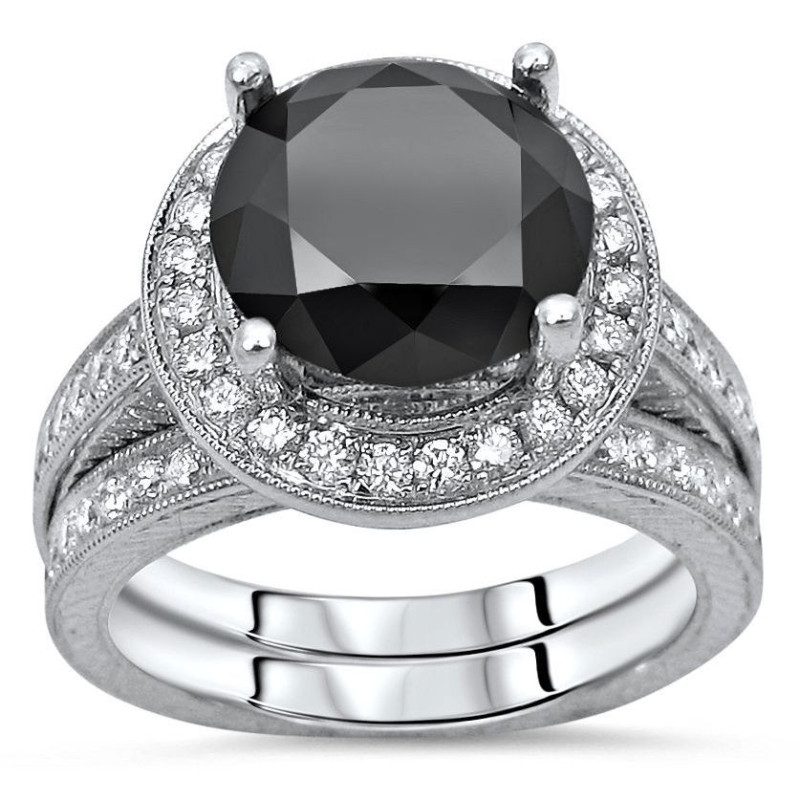 White Gold 4ct TDW Black Diamond Bridal Ring Set - Handcrafted By Name My Rings™