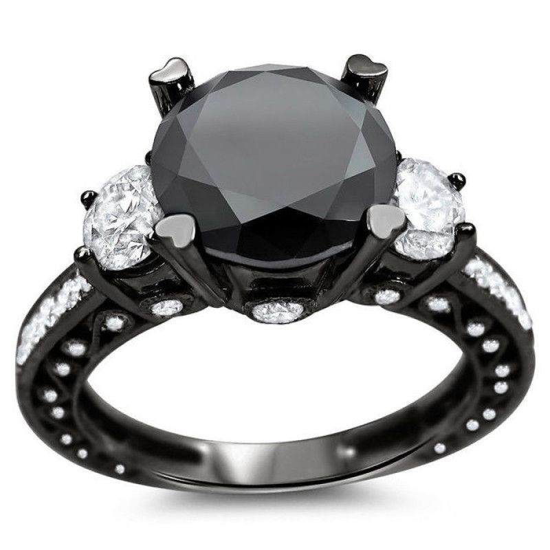 Black Gold 3 3/4 ct Black and White Round Diamond Ring - Handcrafted By Name My Rings™