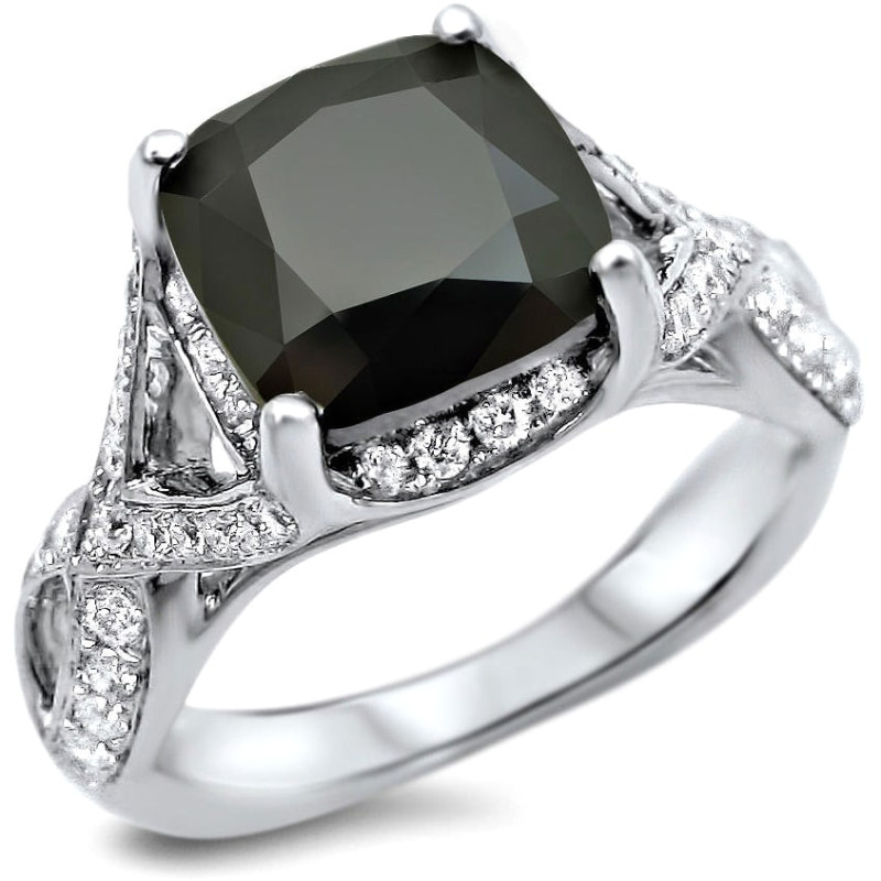 White Gold 3 1/4ct Black/ White Cushion-cut Diamond Engagement Ring - Handcrafted By Name My Rings™